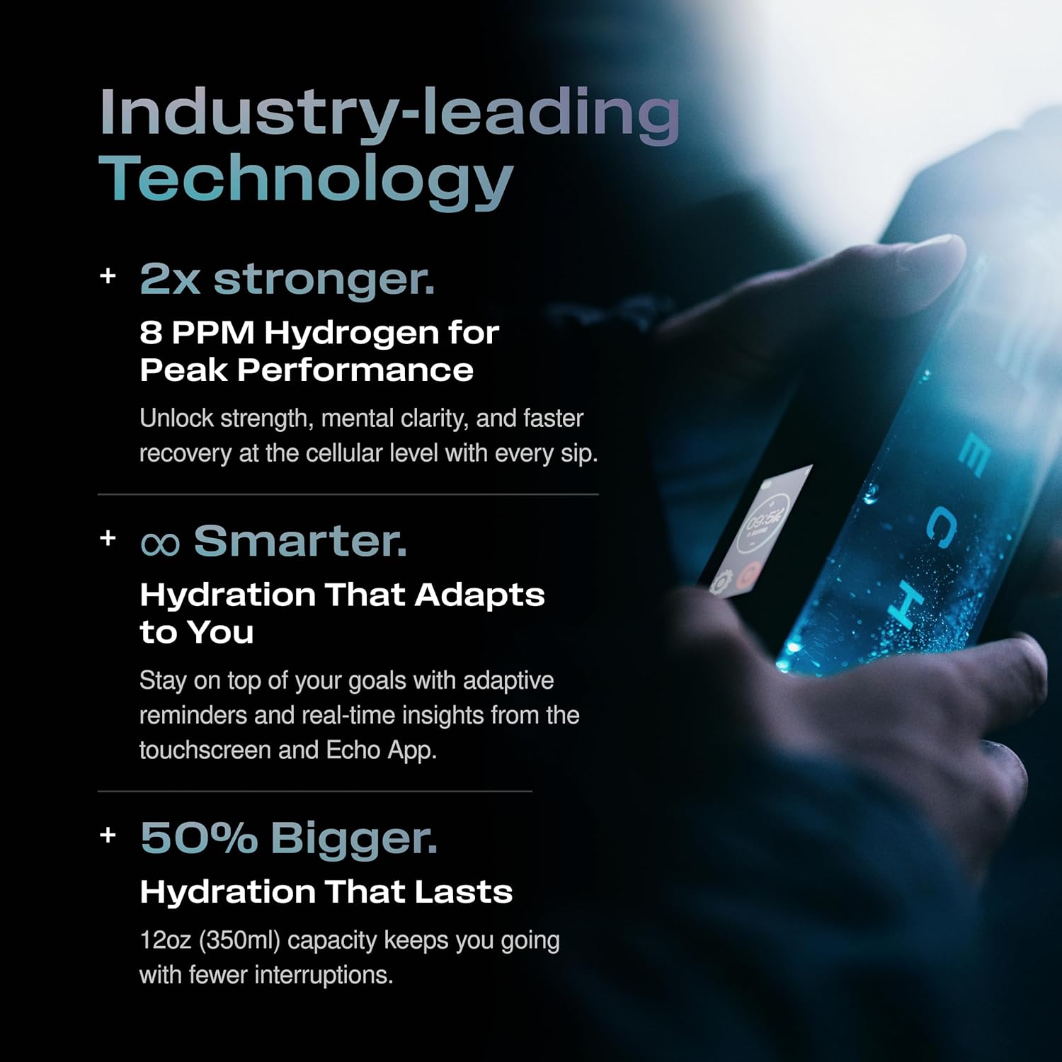 Water Intake Tracking • LCD Touch Screen • Transparent Hydrogen Flask • Compact & Convenient • 12 oz