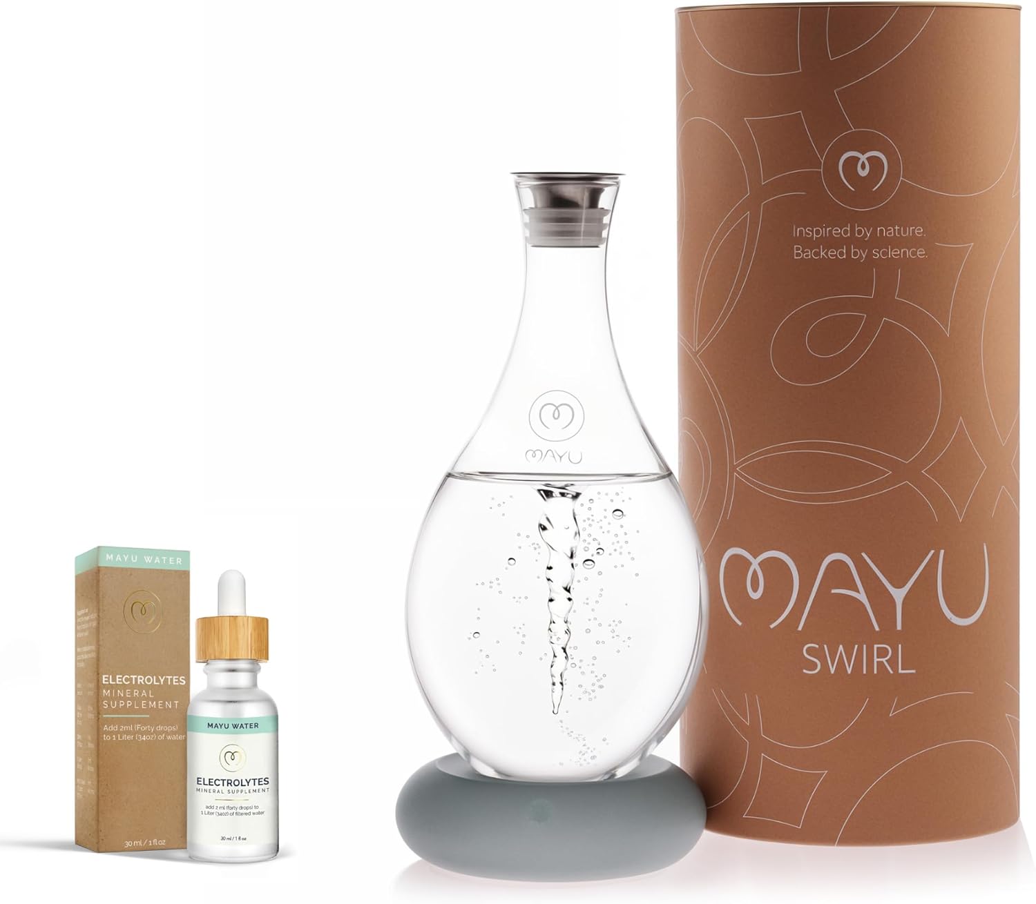 MAYU Swirl Structured Water Pitcher + Electrolyte Hydration Drops Supplement